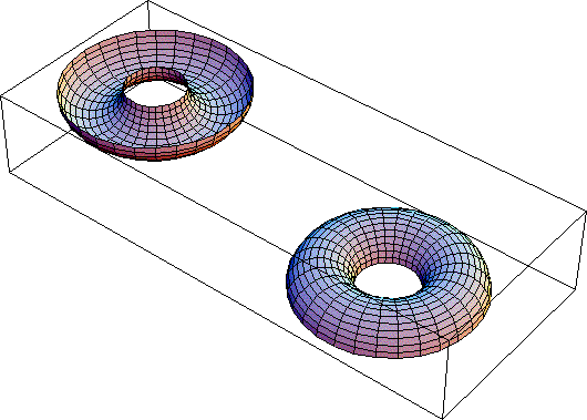 トーラスを回転し、中心を含む平面でカットしたとき、