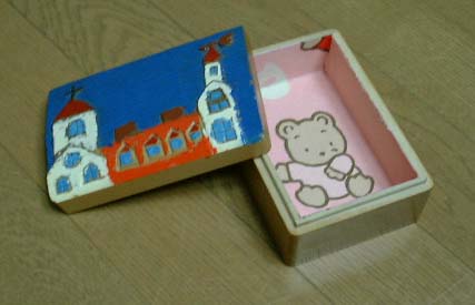 多治見修道院の絵を描いて、彫刻刀で彫りました。(^_^)v
