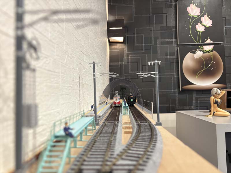 本来ならHOゲージのジオラマ上で自動往復運転を取り入れたいけれど... 仮に...私が先に完成させたZゲージと同等のジオラマをHOゲージで作ろうとした場合、最低でも畳10畳〜12畳のスペースが必要になります。 畳12畳分を鉄道模型で占領する事は我が家では難しい為、我が家で常設出来て、常に運転が可能な場所と言うと... 窓のない防音室の壁面(直線5メートル)を利用すれば、軌間16.5mmのレールが設置出来ると判断。