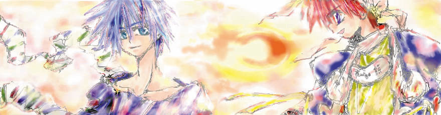 長ボッソくてすみません。 パソによっては全画面表示しないと全部見れないかも・・・ ながーぃ絵が描きたかったんです。 と言っても絵掲で描いた2枚の絵を張り合わせたモノなので ズルしてるんですがf(^^;) 望ちゃんは皆の希望の光というコトでこのタイトル。 夢を語り合う二人みたいな図。 色はわけわかんないですが構図はちょっと気に入ってマスv