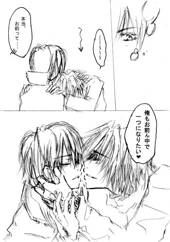 どうにもオチてなくてすみません。 はい、だから没ったんです(笑) オチ着けようと思うともう一本の方と 流れからオチまで全部一緒になってしまって・・・(汗) もう一本の方はディノ兄バースデーの話も兼ねていたので そっちを採用しました。 流れは一緒ですけどコピ本とはまた違った ディノ兄の表情が描けて楽しかったです(^^)