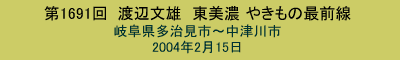 美濃というと美濃紙、美濃焼きなど岐阜県の美濃地方のイメージになってしまうため、東美濃、西美濃という言い方で区別されるようで、今回の旅先のあたりのパンフレットは「東美濃」と書かれています。で、この東美濃地方は多治見、土岐などを中心に古くから焼き物の町として栄えているところです。織部、志野などもこの辺りの焼き物ですよね。 |