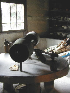 古い土をこねる機械に 歴史が感じられます。 |