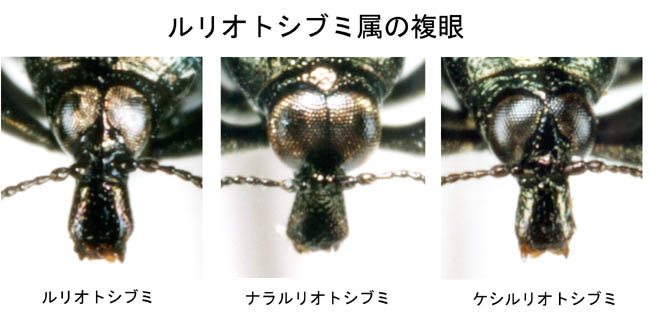(ルリオトシブミだけは2個).分類は,複眼の付き方, オスの腹面の窪みの毛の状態, 脛節の張り出しで判断するが比較標本がないと難しい.メスの場合は複眼以外に明らかな形態差がないため,特に困難である.