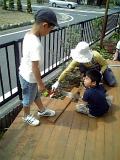 我が家のゴールデンウィークは、木工職人の婿 職人肌の婿が 庭にベランダを作ることにしました。 材料は長女の婿が調達 調達と言っても仕事を辞めたため わんさとある。 俺んちは大工の才能が無いから、もっぱら髪きりに専念 出来上がったベランダで バーベキューをやるときの主役でいいんです。 写真は孫の二人が ペンキ塗り 結構役にたっていますよ。 なんか久しぶりに仕事をしているって感じ いい場面でした。 今夜は出来上がったばかりのベランダで バーベキューだとさ・・・婆さんと長女が食材買いに出かけて行きました。 婆さんと長女が買出しなら、今夜の夕食はまいうー間違いなし・・・・