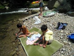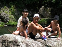 14日は孫3人 芳子 慈子の6人で 愛知県の段戸川に 川遊びの孫孝行 段戸川は岐阜と愛知の県境にある 人里離れた山の中 空気は涼しく 森林の中を流れる清流は マイナスイオンを感じる