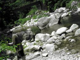 行ったんですが、散策には暑すぎる 急遽マス釣りに変更 野原川観光マス釣り場 釣り支度で 錘を歯で噛んだら 新品の入れ歯が ガチという音と共に 欠けてしまう 竿の先は折ってしまう 竿が長すぎ 糸が細すぎ 散々な釣り